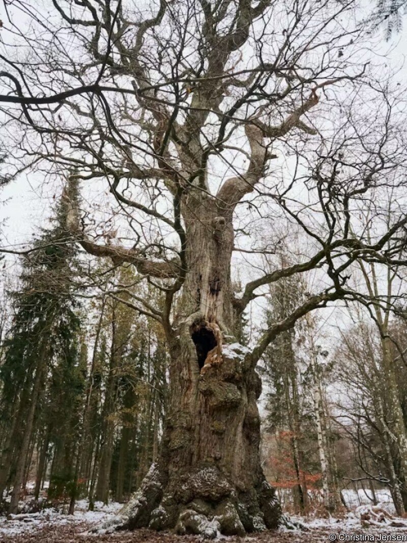 Træet er i Lille Hareskov - følg den afmærkede vandrerute på 5,8 kilometer, kaldet den gule rute. Ruten er afmærket med gule prikker, og det er muligt at korte den af flere steder.
